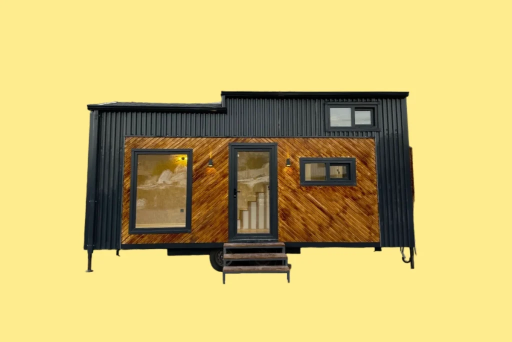 Dış cephesinde opsiyonel olarak lambri veya izolasyonlu trapez sac kullanılmıştır.